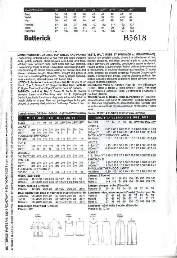 Butterick B5618 Sewing Pattern Misses Easy Unlined Jacket Etsy De